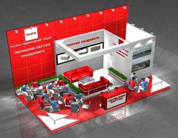 Жабық көрме кеңістігі, қабырға панельдері, фассиялық панель, кілем жабыны, жиһаз және тапсырыс берілген аумаққа байланысты жарықтандыру кіреді.